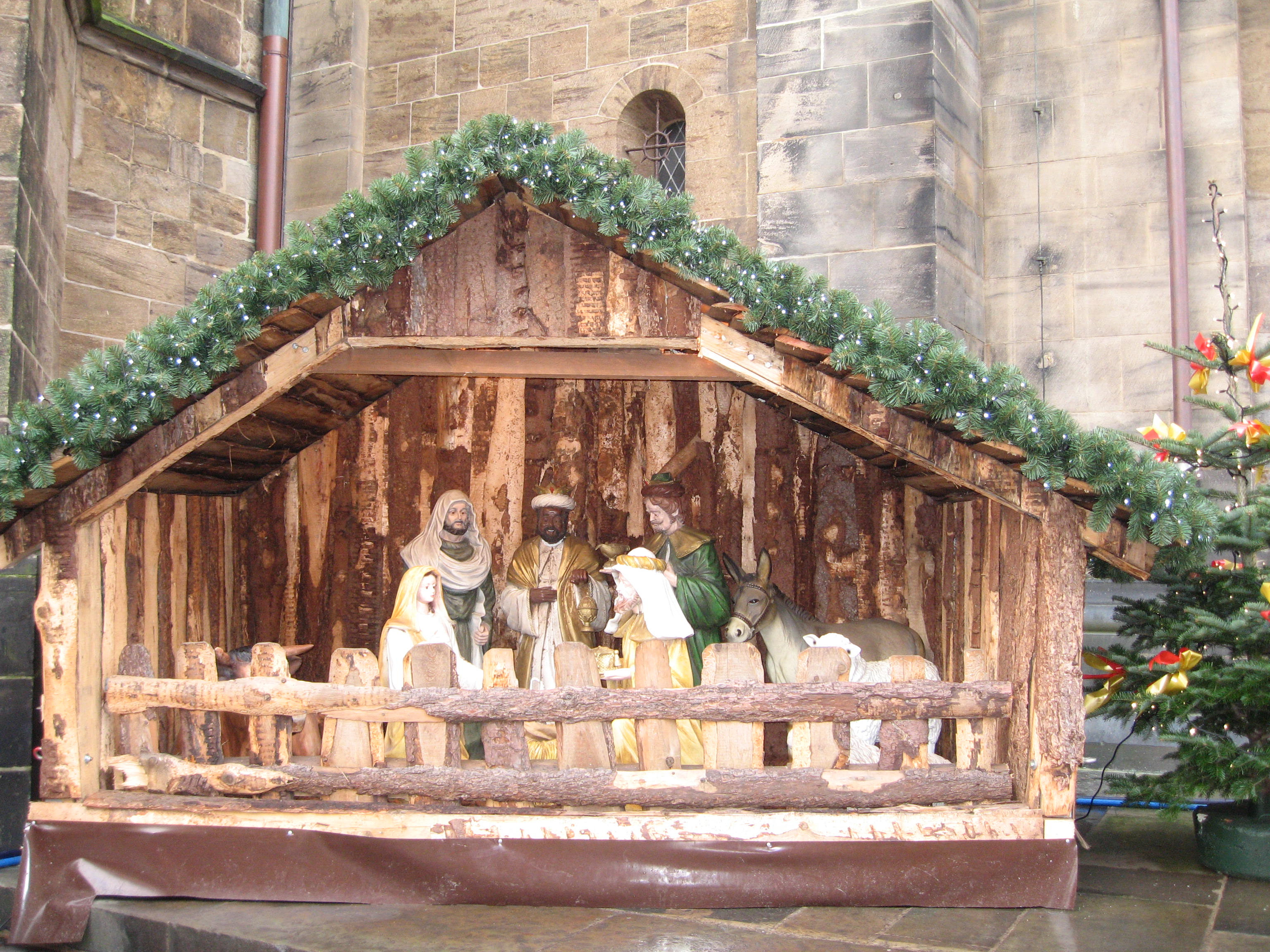 Nestled against the massive Romanesque walls of the Dom church, you can see this near life-size manger scene.