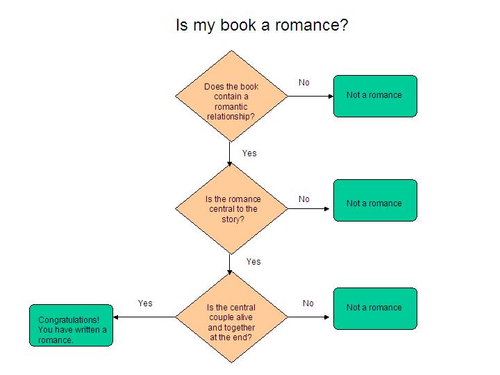 Because this question keeps popping up on writers forums and the like, here is a handy flowchart to answer the question “Is my book a romance?”
