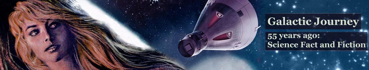 When we started eight years ago, in “1958”, we were just covering the three big American SF mags: Fantasy and Science Fiction, Galaxy, and Analog, as well as the space shots — Pioneer 1 had just gone halfway to the moon. Very quickly, as more people became associated with the Journey, we expanded our coverage to all the SF mags, current SF movies and TV shows (we’ve reviewed every episode of Twilight Zone, the Outer Limits, and Doctor Who), comics, fashion, art, music, politics, counter-culture…you name it!